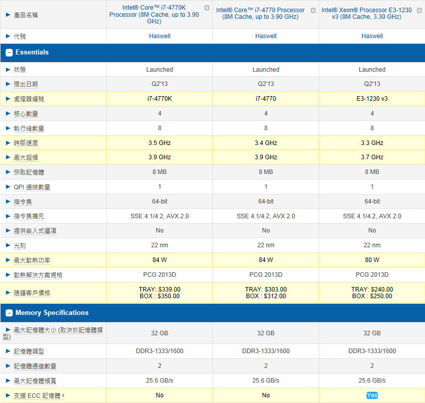 ![]() Intel自2010年針對中低階市場發表的 Clarkdale 架構開始試著將原本位於主機板北橋晶片的顯示單元完全整合進CPU內,以縮減主機板上的晶片數量。隔年發表 Sandy Bridge 架構更則是全面導入 HD Graphics 顯示晶片,雖說性能不是非常威猛,但足以應付基本的文書和娛樂需求,然而對於部分搭配獨立顯示卡的使用者來說,這個內顯的存在就顯得多餘了些,Intel因此在發售工作站/伺服器專用的CPU時也推出了無內建顯示晶片的 Xeon E3-1200 系列。 隨著時代推進,Intel 最新的架構已演化到 Haswell,Xeon E3-1200 也同步更新至 v3 版本。 ![]() 基本架構主要是4核心/8執行緒,具備8MB的L3快取,共有16條 PCI-E 3.0 通道,支援雙通道 DDR3/L-1600 ECC記憶體。 這次要為大家介紹的是目前性價比最高的 Xeon E3-1230 v3,基礎時脈為 3.3 GHz,透過 Turbo Boost 2.0 技術最高可加速至 3.7 GHz,TDP為84W,採用 LGA1150 封裝,與目前通路所販售搭載消費級/商用級晶片組(Z87/H87/B85)的主機板幾乎都相容。 Intel提供的 Xeon E3-1230 v3 測試版CPU實體 ![]() ![]() 可以看到CPU接腳處的電容配置和一般 Core i 系列產品不同。 以下是上機實測 測試硬體平台 CPU: Intel Xeon E3-1230 v3 Cooler: Antec Kühler H2O 920 改雙槽冷排 Thermal Compound: Antec Formula 7 MB: ASUS ROG Maximus VI Formula RAM: Avexir Core DDR3-2400 4GB*2 Graphic: NVIDIA GeForce GTX 780 Storage: Corsair Neutron GTX SSD 240GB PSU: Antec HCP-1200W Chassis: Lubic Open Paltform 3 Monitor: Dell U2410 OS: Windows 7 64 Bit 室溫26゚C,相對濕度65% BIOS預設模式偵測到的時脈資訊 ![]() 雖然是伺服器CPU,搭配Z87晶片組還是能啟用 Intel X.M.P. 記憶體超頻功能。 ![]() 不過CPU倍頻最高就只能拉到37倍,也就是 Xeon E3-1230 v3 經過 Turbo Boost 後最高的時脈 3.7 GHz。 ![]() 啟動系統後 CPU-Z 的偵測資訊 ![]() Cinebench 多執行緒圖形渲染 ![]() AIDA64 記憶體頻寬 ![]() 3DMark 2013 ![]() PCMark8 ![]() 跟消費級最高階的第四代 Core i7-4770K 比起來,主要就是拿掉了內建的 HD Graphics 顯示晶片不鎖頻功能,運作時脈低了 200 MHz,若是對比 Core i7-4770 則時脈僅相差 100 MHz,但是這樣一來零售價就相差了將近 US$60~100 左右。 ![]() 對於遊戲玩家來說,建構平台時通常會優先考慮搭配獨立顯示卡,因此通常不會用到內顯,反而還會覺得內顯占用系統資源。但可別忘了,少了內顯可就沒辦法支援 Quick Sync Video 高速影像同步轉檔技術。綜合以上幾點,若你完全用不到內顯功能,又需要4C/8T的多核心處理器,Intel Xeon E3-1230 v3 絕對是最經濟實惠的選擇! [xfmorelink]https://www.xfastest.com/thread-122535-1-1.html[/xfmorelink][xfaward]V[/xfaward] |