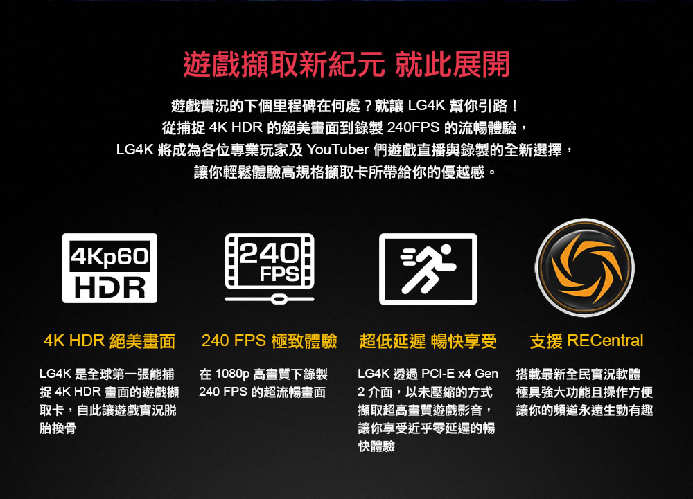 圓剛Live Gamer 4K GC573實況擷取卡 1.首款4Kp60 HDR遊戲擷取卡 規格再進化 2.支援240FPS 高更新率錄影 影像極致順暢 3.採未壓縮影像擷取 Preview超低延遲 4.搭載第4代全民實況軟體RECentral 5.免費搭贈威力 ...