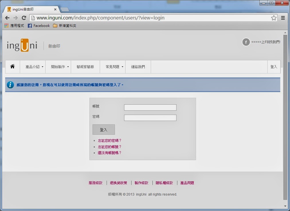 ▼ 開啟ingUni自由印的網頁,先註冊好帳號。