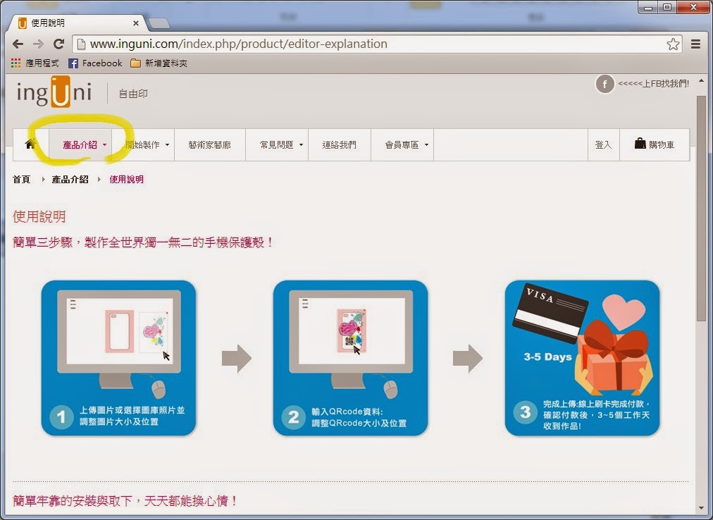 ▼ 點選產品介紹,可以發現整個步驟非常的簡單,只要準備圖檔,上傳製作,最後使用信用卡付款。