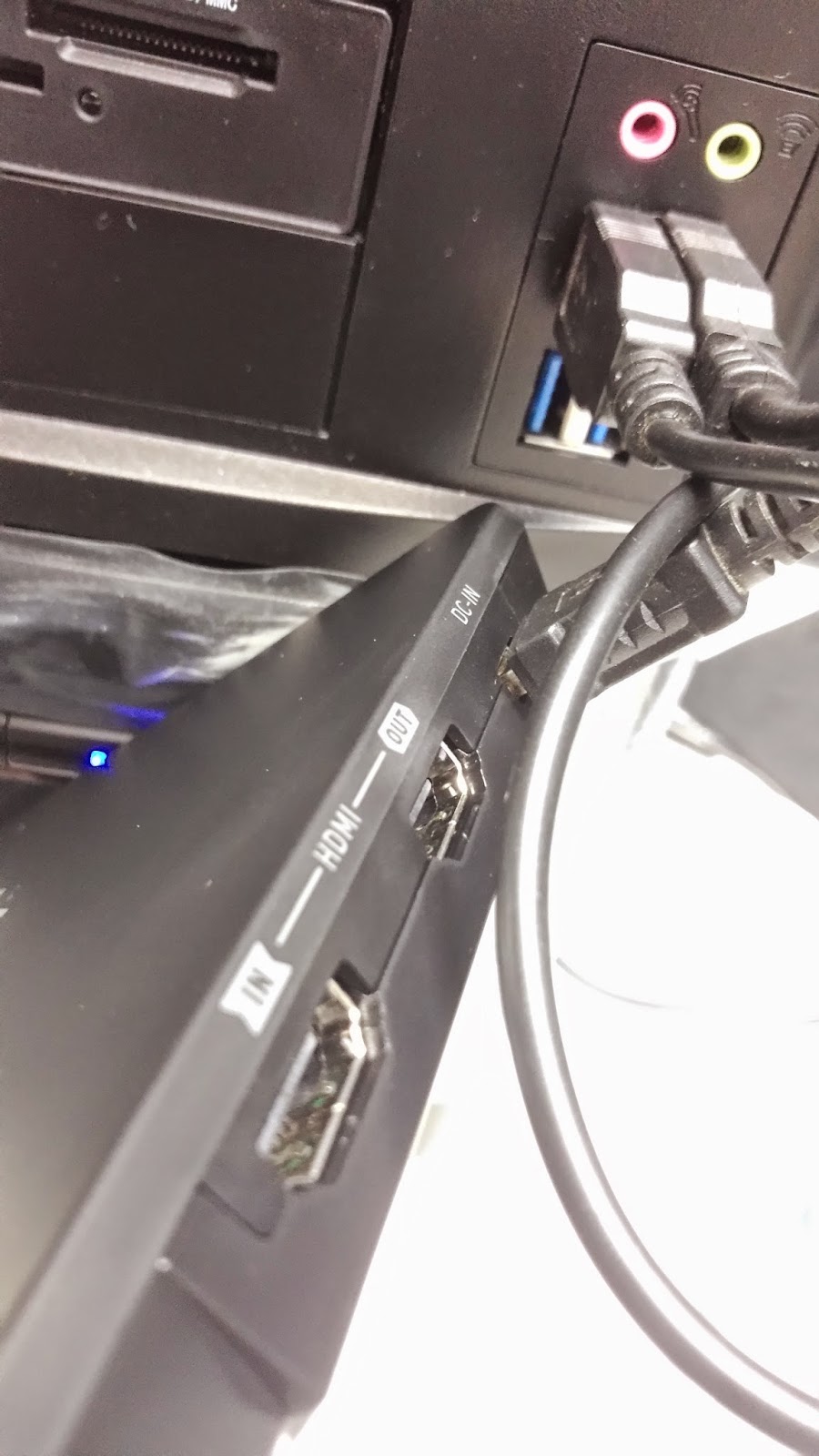 ▼ AverMedia HD錄影盒ER130的out輸出端,也可以使用HDMI to DVI的連接線,連接到具有DVI輸入的液晶顯示器。