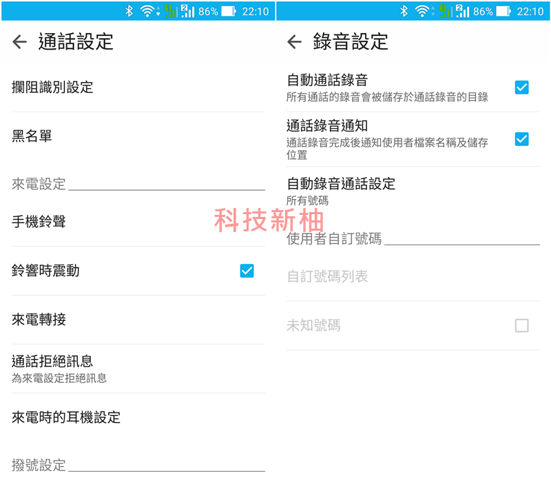 ▲ ASUS Zenfone 2 內建來電黑名單 (圖左) 與自動通話錄音功能 (圖右)。
