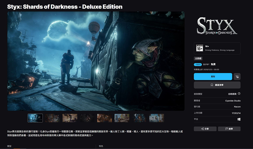 [軟體遊戲] 哥布林限免! 潛行佳作《冥河:暗影大師》系列 EPIC 免費領取,截至 1 月 23 日 為止 |