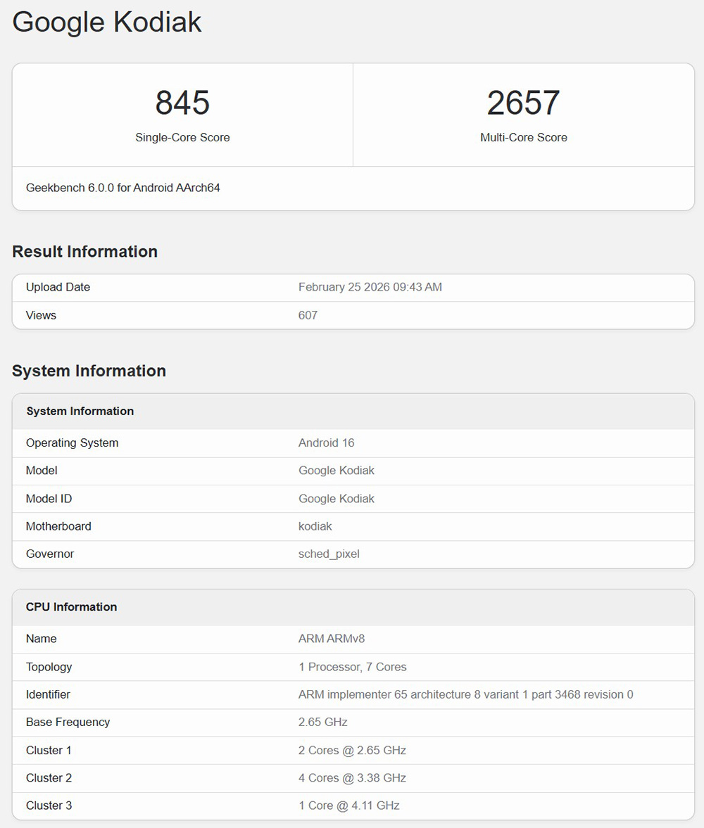 [業界新聞] Google Tensor G6 跑分首度曝光! 傳 Pixel 11 可能採用台積電 2nm |